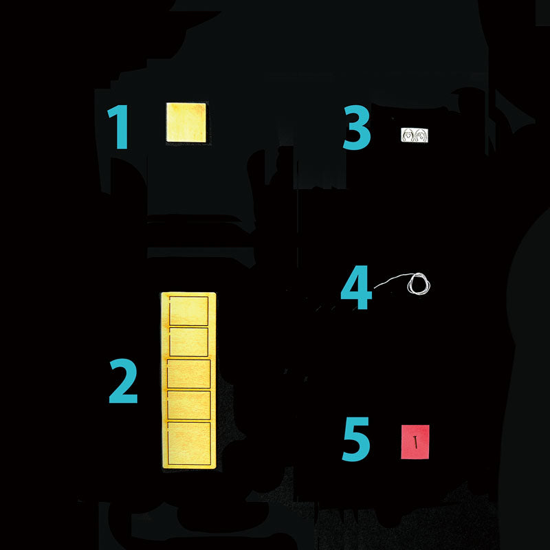 5. クギ: 1本(わかりやすくする為、赤い紙にのせてあります)